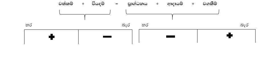 මෙම මූලධර්මයකින් ගිණුම්කරණ සමීකරණයක ස්වරූපයෙන් පහත පරිදි දැක්විය හැක.