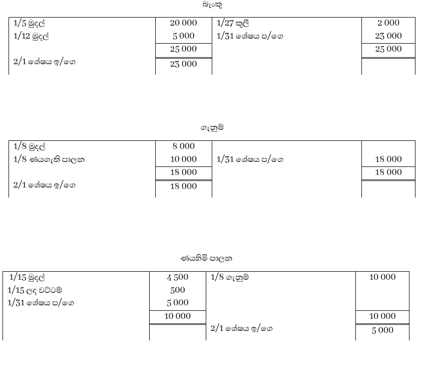 කමල්ගේ ව්යාපාරයේ 2021 ජනවාරි 01 දින ආරම්භ කර ජනවාරි මාසය තුල සිදු වූ ගනුදෙනු පහත දැක්වේ.